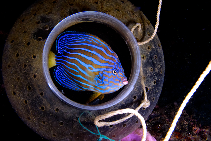 Introduction:Blue tropical fish being grasped secretly hidden in jar, a little scratch on it’s lips please go home quickly, poor guy.