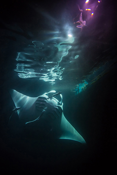 Introduction:Lighting attract many small fish close to the boat, as well as mantaray, during diving in Maldives.